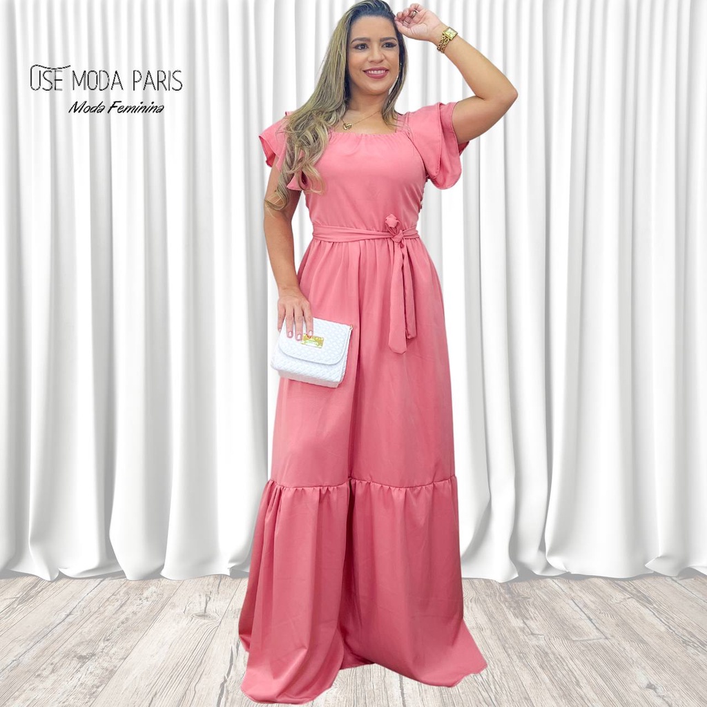 vestido longo estampado Moda Evangélica soltinho madrinha com Faixa e Costura Decote Quadrado