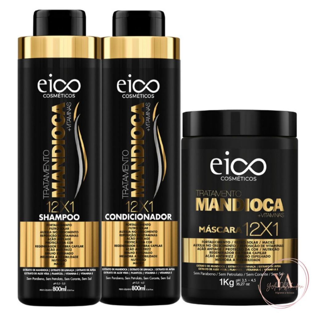Kit Eico Tratamento Mandioca Shampoo 800ml + Condicionador 750ml + Máscara 1kg (3 Produtos)