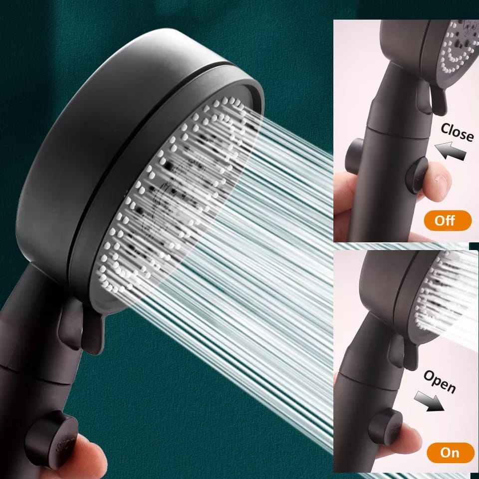 Chuveiro de Reforço Ducha Preta Ajustável De Alta Pressão Com 3 Modos