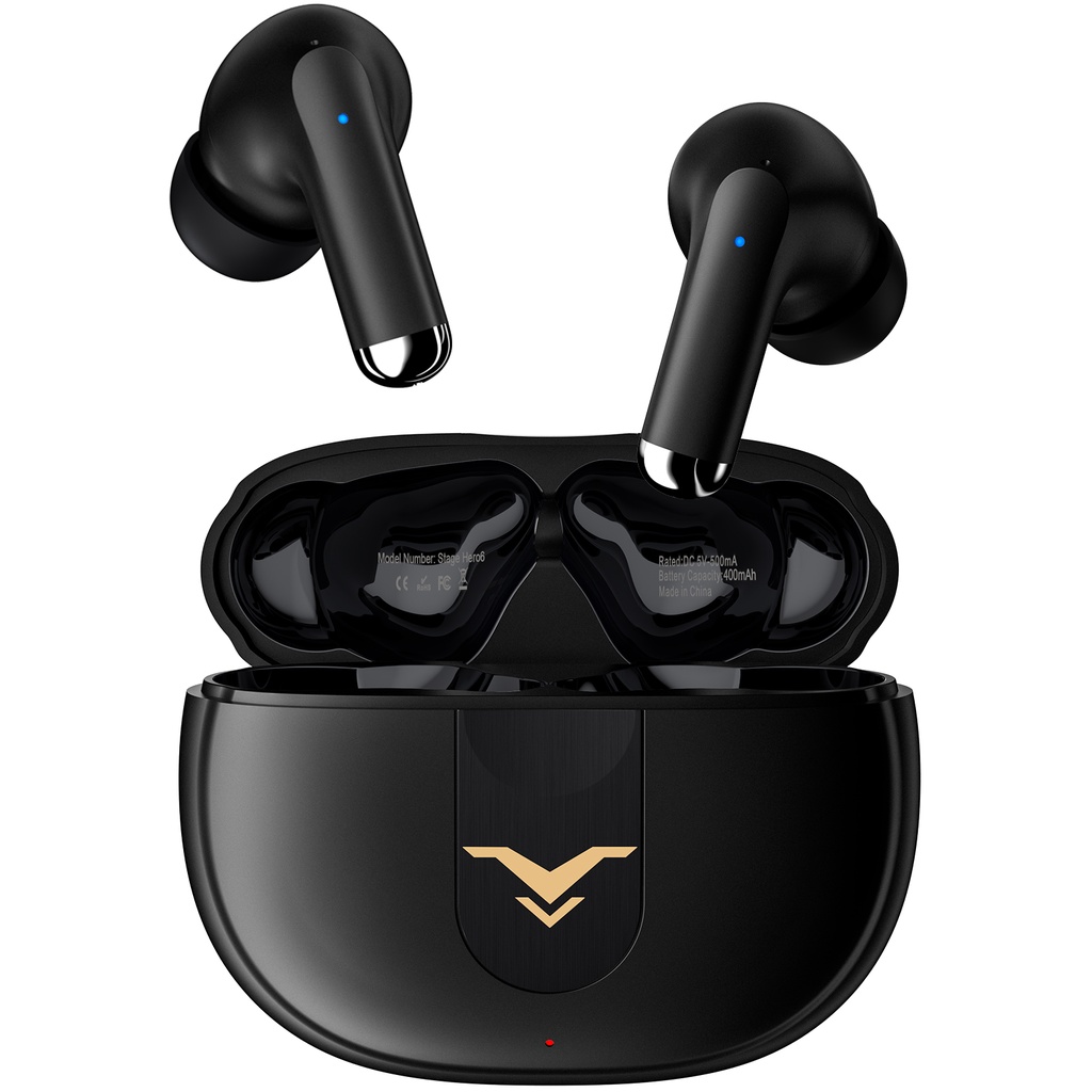Fone de Ouvido Stage Hero6 TWS com cancelamento de ruído ativo(ANC), fone sem fio Bluetooth 5.2 com 4 microfones para chamada, 35H tempo de reprodução, modos duplo, IPX5 à prova d'água