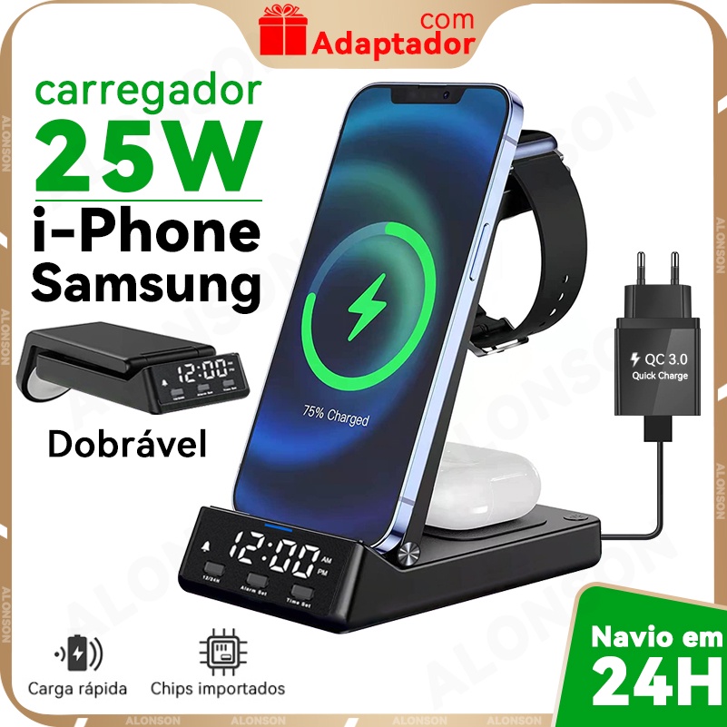 25W Carregador Samsung iPhone 4 em 1 carga rápida carrega sem fio suporte Android