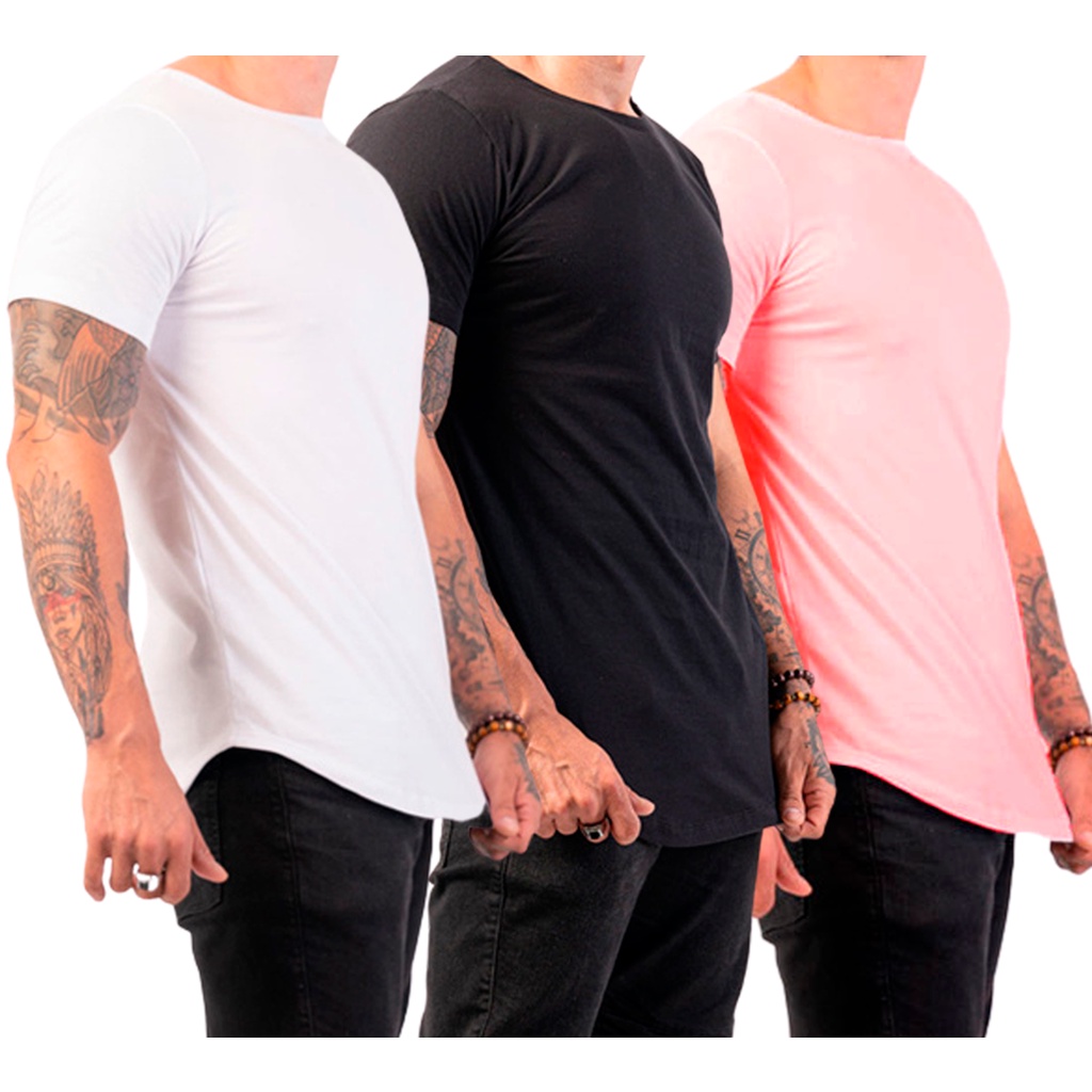 Kit 3 Camiseta Masculina Long Line Lisa Oversized Algodão