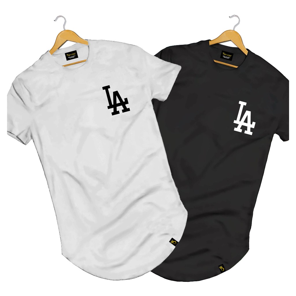 Kit 2 Camisa Camiseta Masculina Longline Blusa Algodão StreetWear USA Preto Branco Long