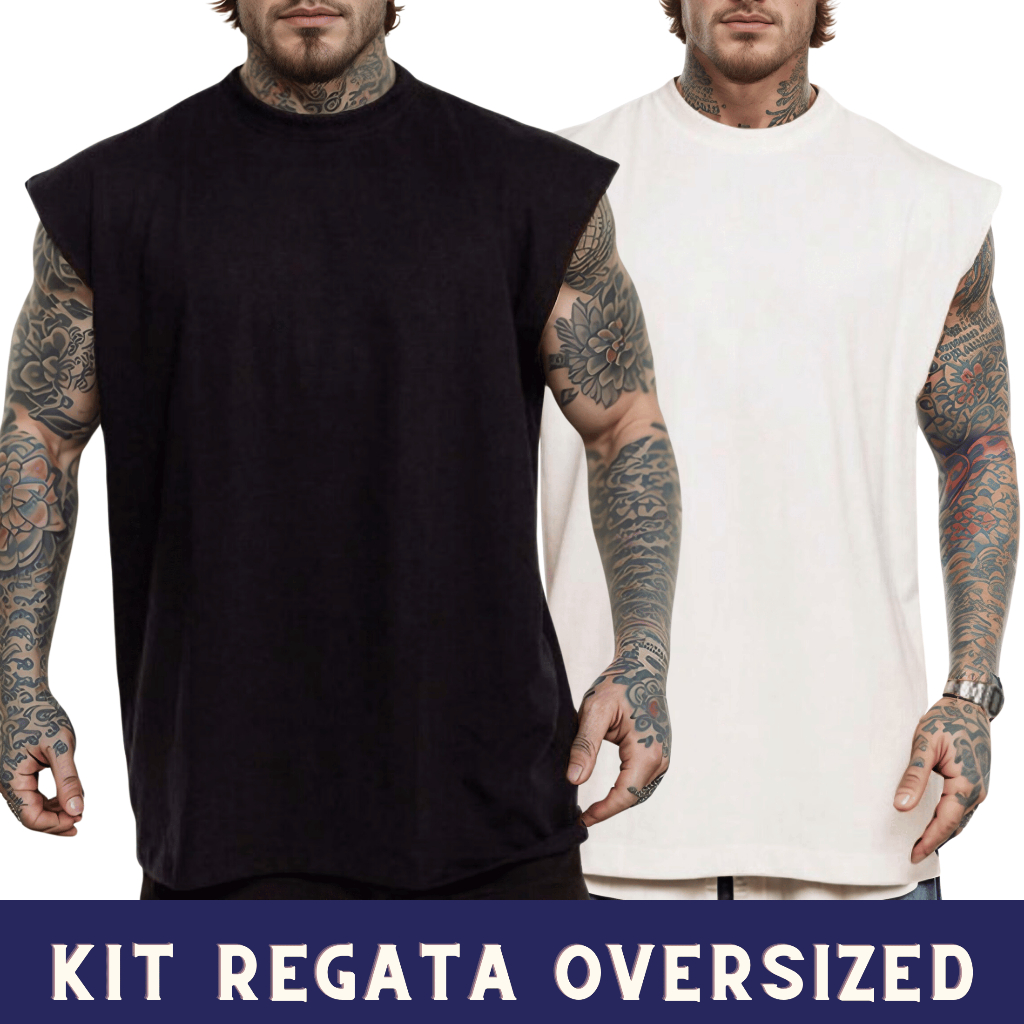 Kit 2 Camisetas REGATAS Oversized Masculina Lisa Camiseta Streetwear 100% Algodão