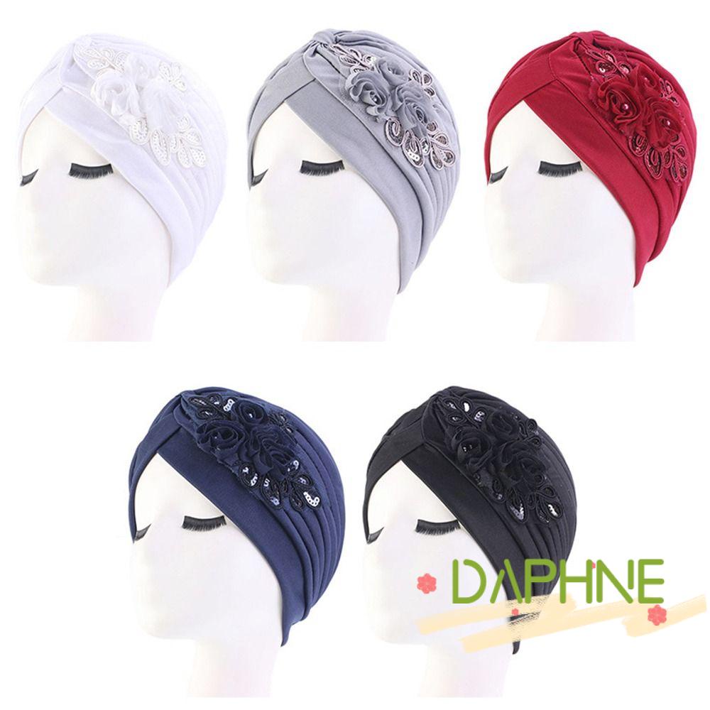 DA-FACC Muçulmano Turban Chapéu De Lantejoulas Flor Bandana Touca De Sono