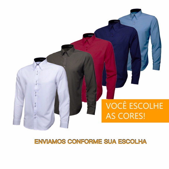 Kit 5 Camisas Social Masculina Manga Longa Lisa Slim Blusa Camiseta Lisa