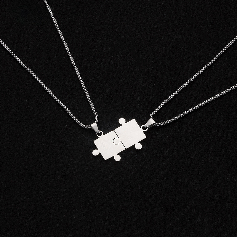 Colar De Quebra-Cabeça Exclusivo Com Corrente De Aço De Titânio Hip Hop-Pingente De Casal Colorido Para Acessório De Mod