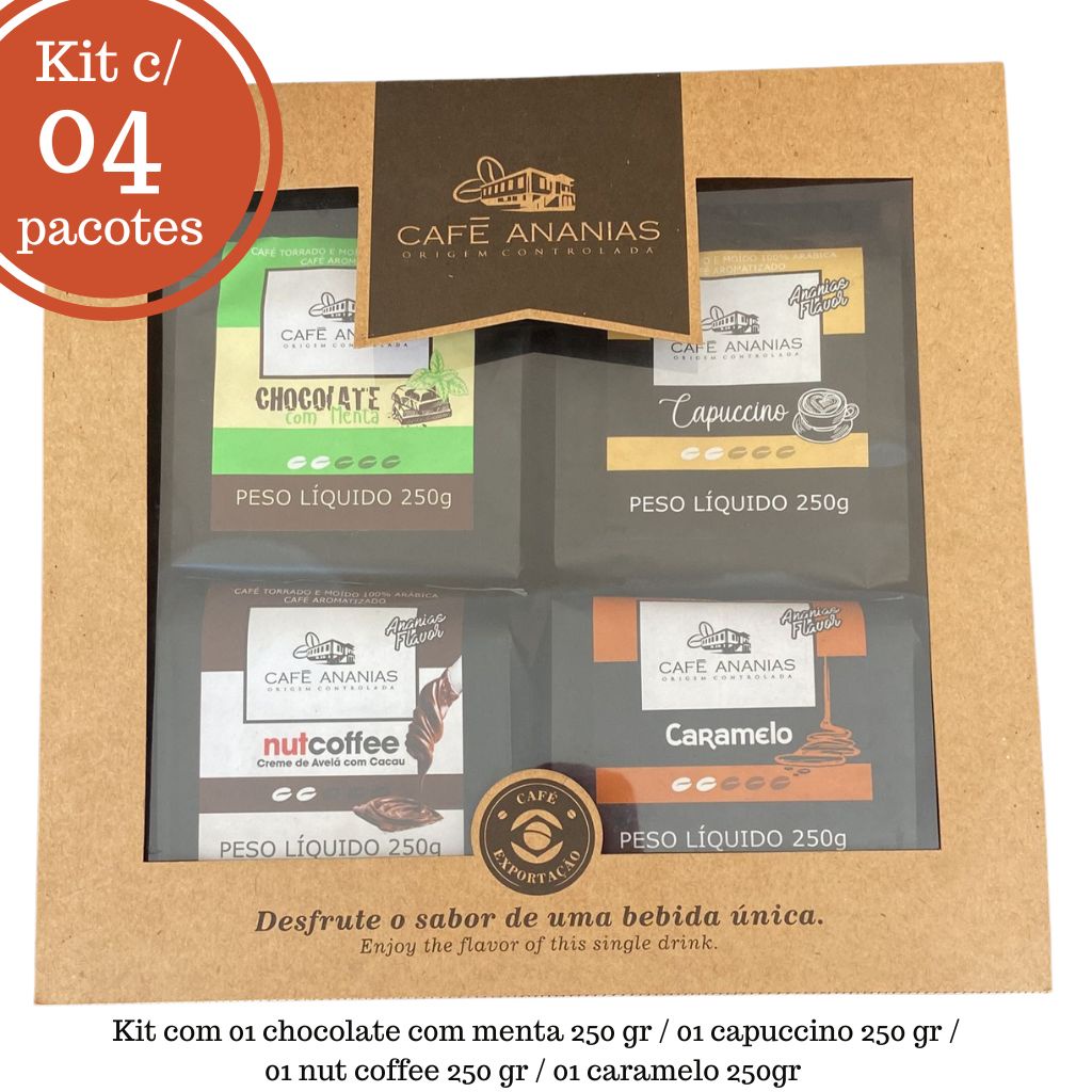 Kit com 04 Café Ananias Aromatizados em Pó 250Gr cada
