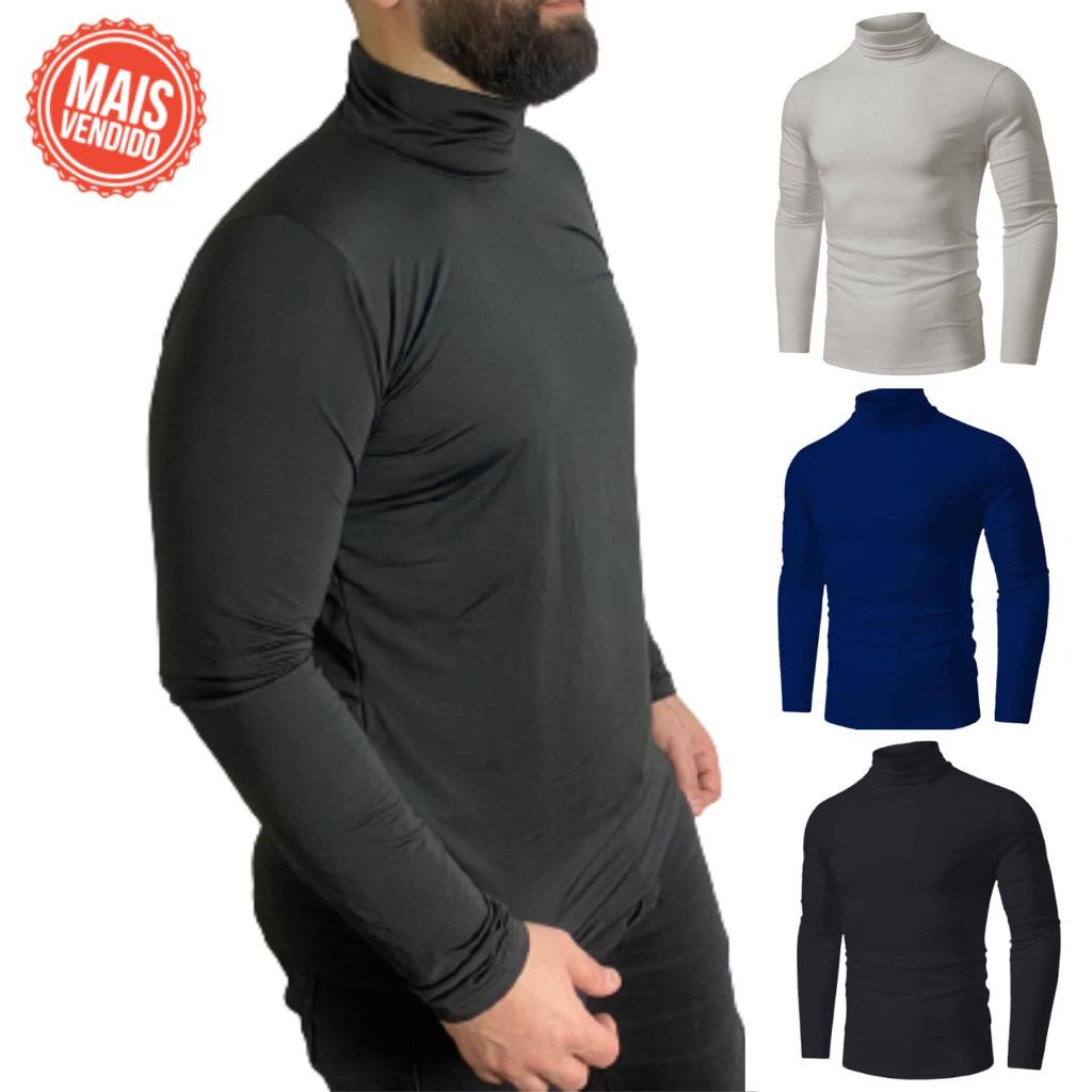 Camisa Blusa Masculina Manga Longa Camiseta Segunda Pele Proteção Solar Fator 50 UV Gola Alta