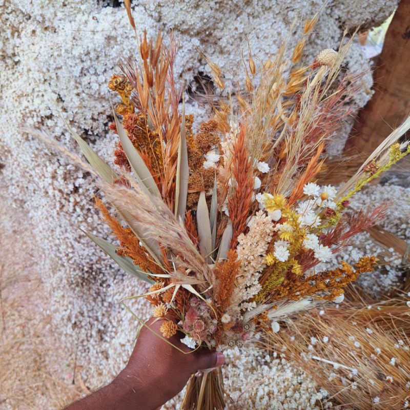 Buquê de flores sempre vivas , trigos , capins e botões desidratados