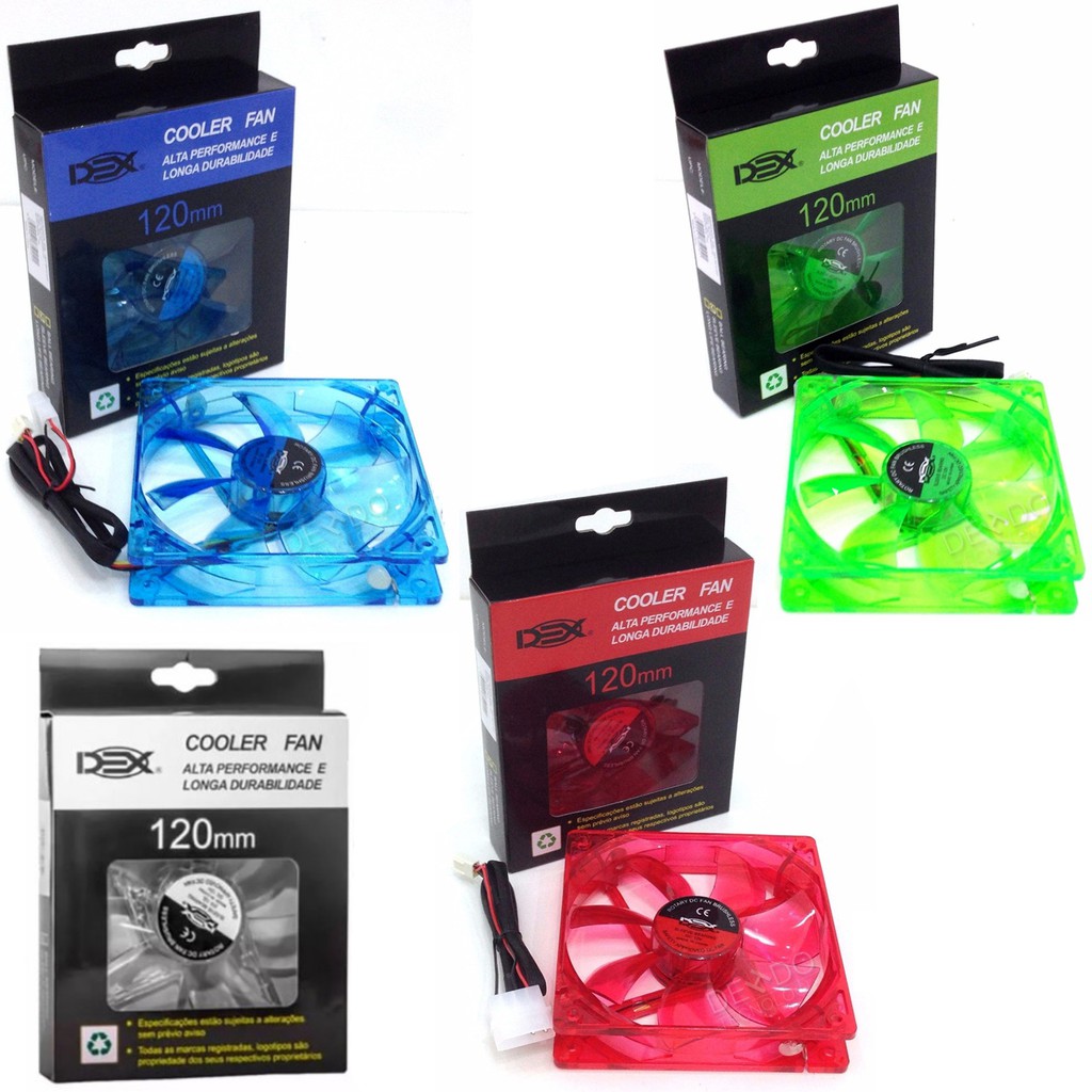 Cooler Fan 12cm 120mm c/4 Led Verde Azul Vermelho e Branco Ventoinha 120 X 120 p/ Gabinete modelo Dex Dx-12L