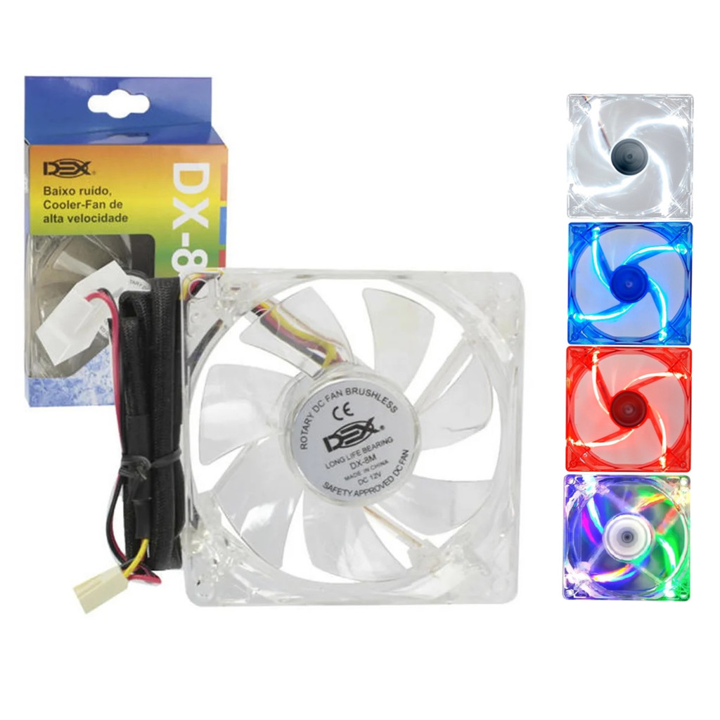 Cooler Fan Led 120x120x25 Ventoinha para Gabinete PC Desktop Computador 12cm 120mm Dex DX12F Branco, Azul,Verde e Vermelho