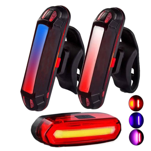 Kit 3 Lanterna Pisca Traseira Bike Led Recarregável Usb Pisca Branco Vermelho