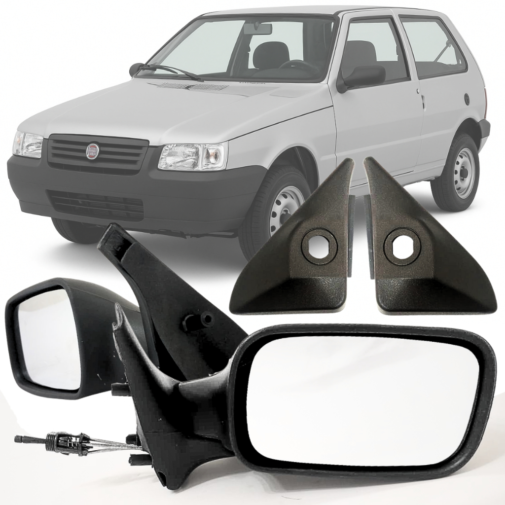 Par Espelho Retrovisor Fiat Uno Fire 2001 2002 2003 2004 2 Portas Com Acabamentos e Controle Manual
