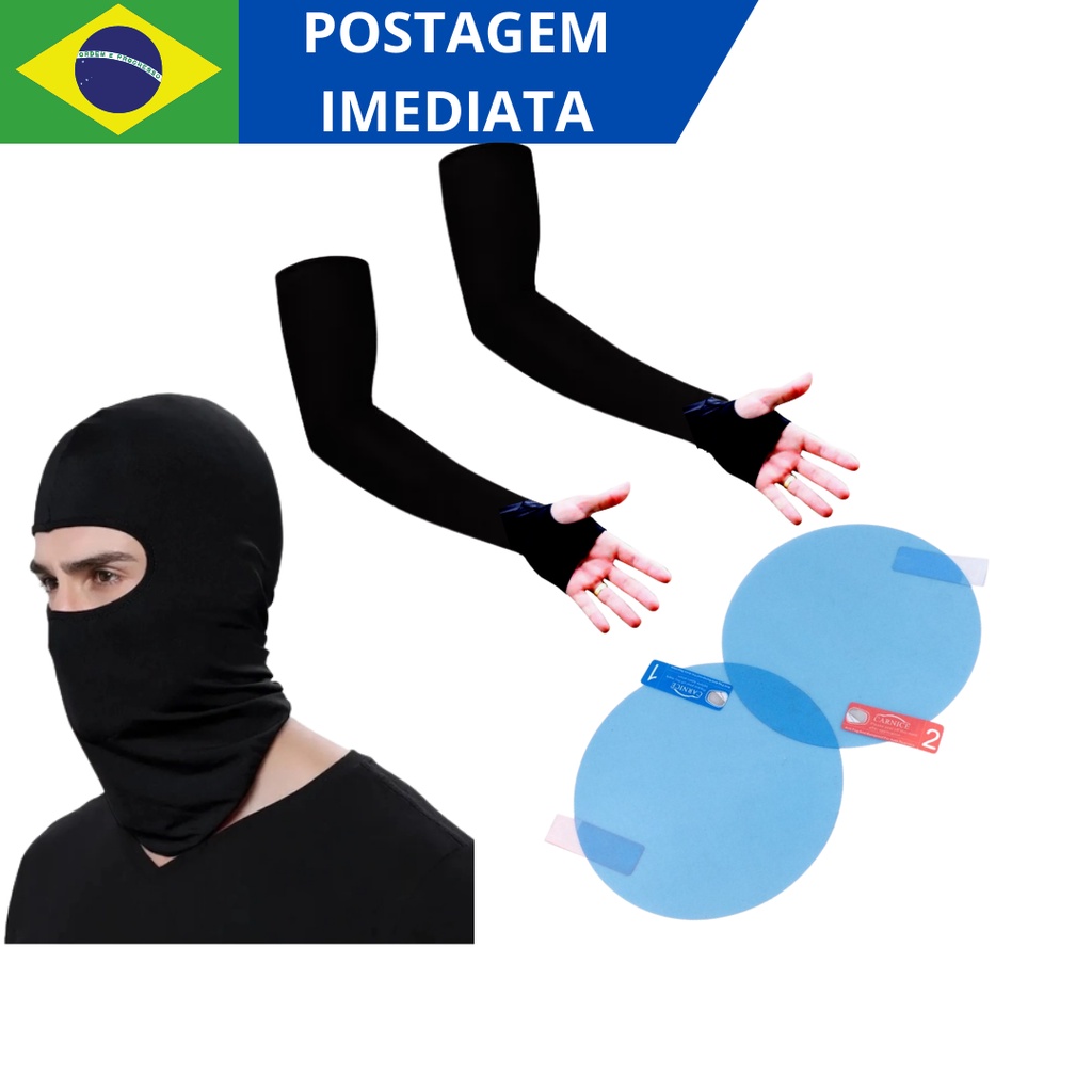 Kit Touca Ninja Balaclava Tática Proteção Térmica Corta Vento Motoboy E Par Manguito Com Dedo+Película Protetora Espelho Retrovisor Carro e Moto anti chuva 2 unidades