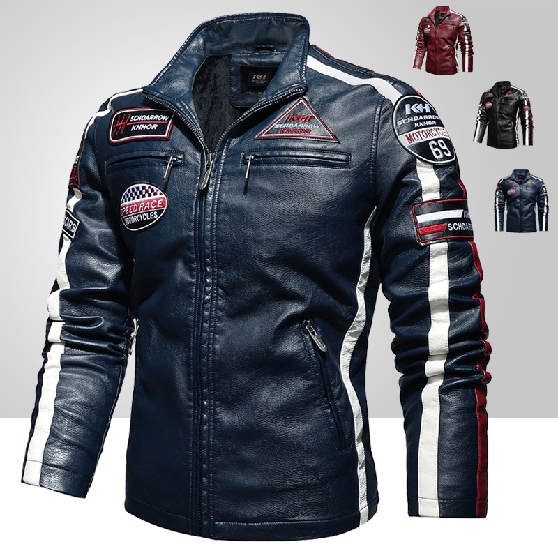 Mens Jaqueta De Couro Da Motocicleta Do Vintage 2021 Homens Moda De Nova Jaqueta De Couro Biker Bordado Masculino Bombardeiro Casaco De Inverno Do Velo Pu Sobretudo