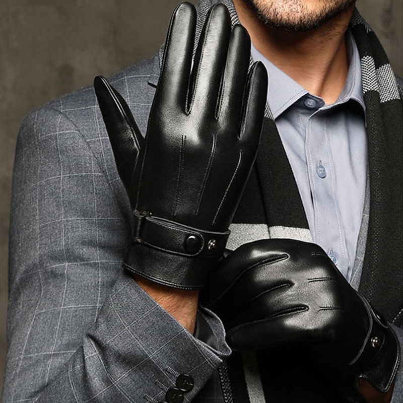Luvas De Negócios Homens Tela De Toque De Couro PU De Inverno Mais Veludo Manter Quente À Prova De Vento Pretas Masculinas De Outono
