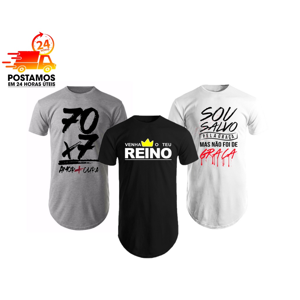 Kit Com 3 Camisetas Camisas Masculinas Long Line Oversize