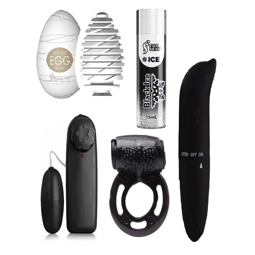 Kit Sex Shop Vibrador Feminino + Vibra Golfinho + Vibro Bullet + Plug Anal + Egg Masturbador + Anel Peniano Vibrador + Lubrificante Sexual Intimo Kit Completo