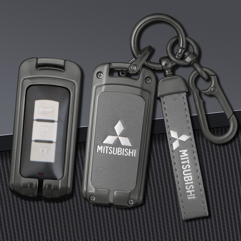 [Estoque Pronto] Estojo Mitsubishi Para Chave De Carro Outlander Lancer 10 Pajero Sport L200 EX ASX Liga De Zinco + Couro De Microfibra De Alta Qualidade