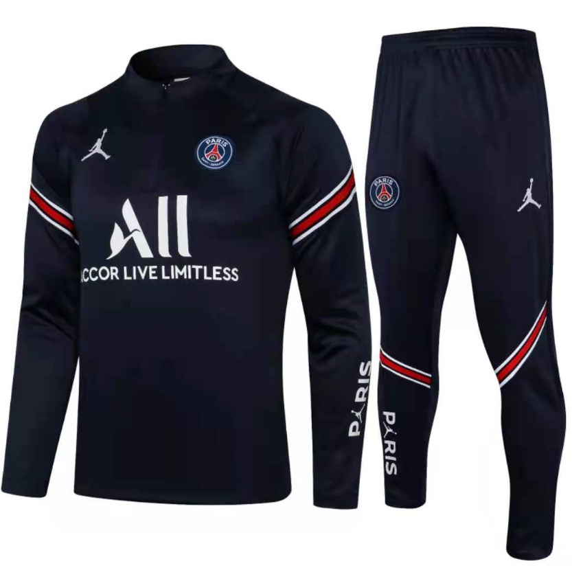 Estoque Pronto] 2021-22 PSG Paris Jordan Treino De Fato De Futebol Masculino Com halfzip Azul De Alta Qualidade 1 : 1