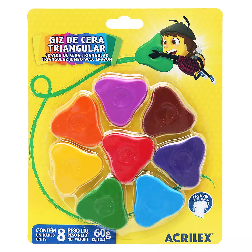 Giz de Cera Triangular com 08 Cores - Acrilex