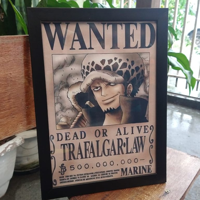 Quadro com moldura e vidro anime One Piece wanted procurado Trafalgar Law luffy zoro sanji robin