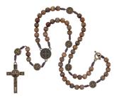 Colar Terço São Bento Conta Madeira Cruz Medalha