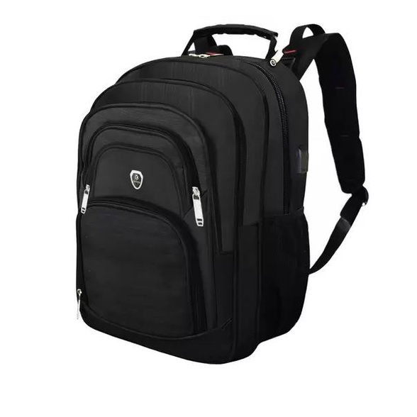 Bolsa Mochila de Couro Universitária Unissex Feminina Masculina Reforçada Com Cabo de Aço C/USB