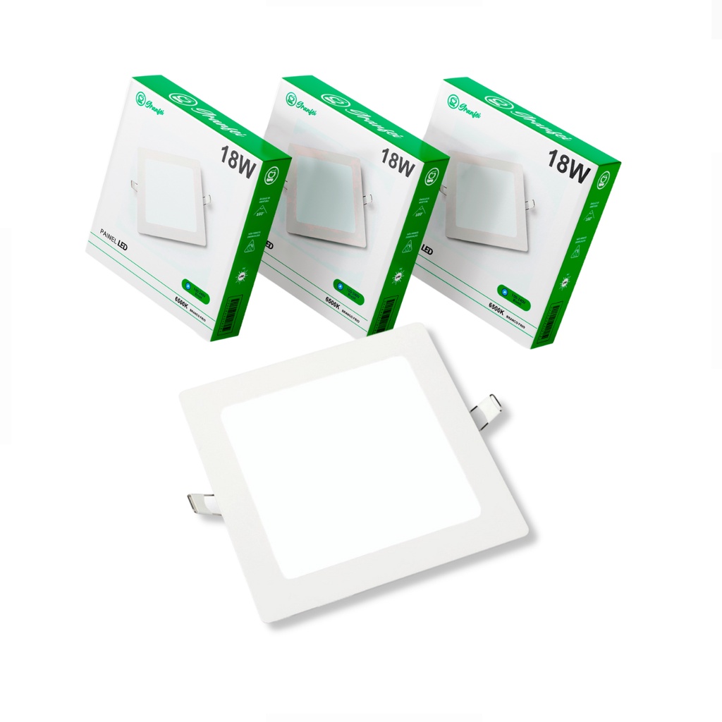 Kit 10 Luminária Painel Plafon Led 18W Quadrado Redondo Alumínio Embutir