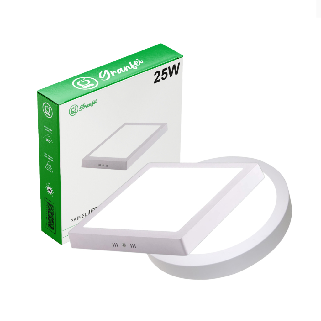 Kit 2 Luminária Painel Plafon Led 25W Quadrado Redondo Alumínio Sobrepor Branco frio Quente Neutro