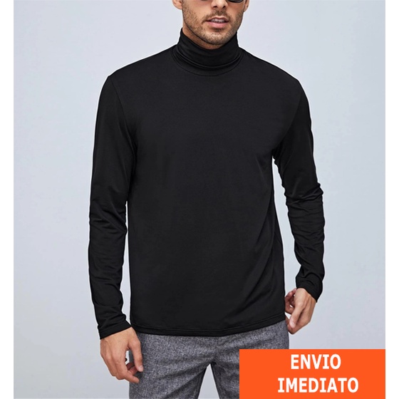 Blusa Camiseta Gola Alta Cacharrel Masculina Manga Longa Malha Lisa Cor Solida