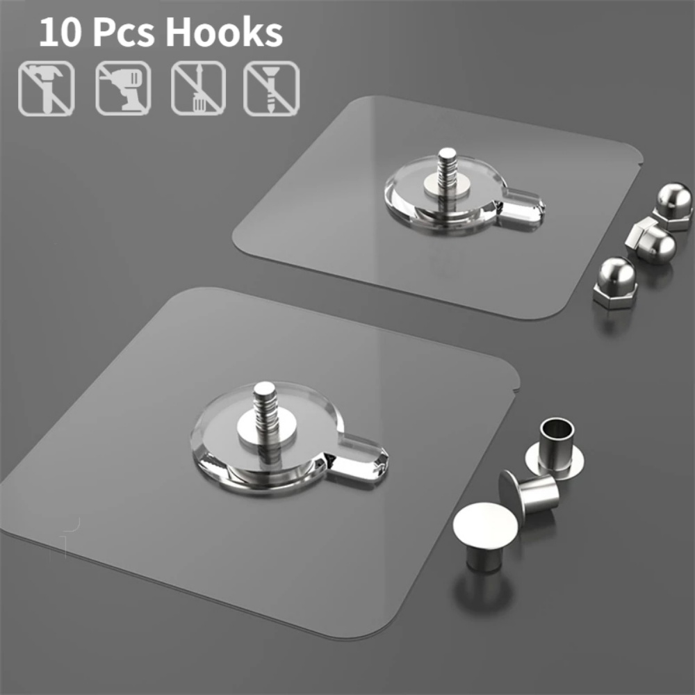 10pçs Gancho Adesivo De Plástico Transparente Com Plugue Forte Para Cozinha, Banheiro