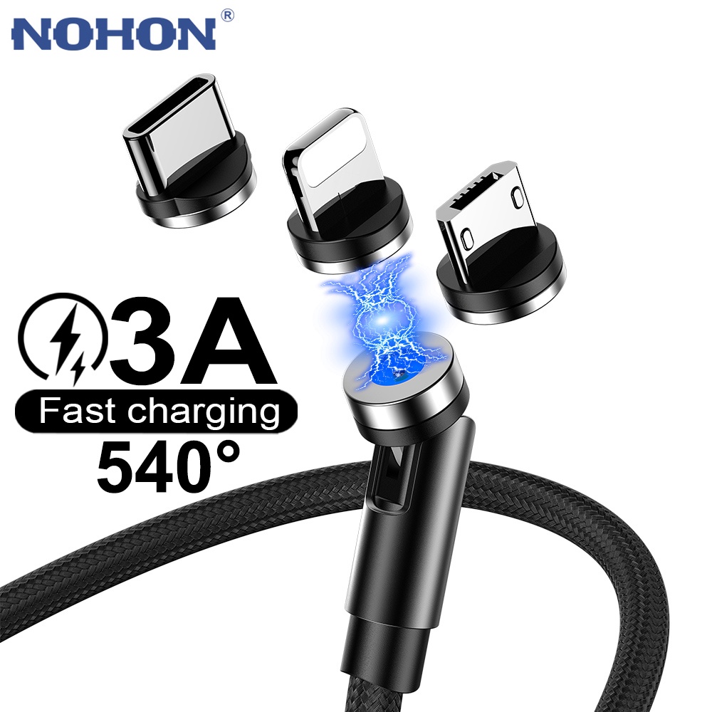 Rápido Cabo De Carregamento Tipo C Micro USB Relâmpago Fio Do Carregador Magnético Longo 1 M 2 Dados Telefone Móvel