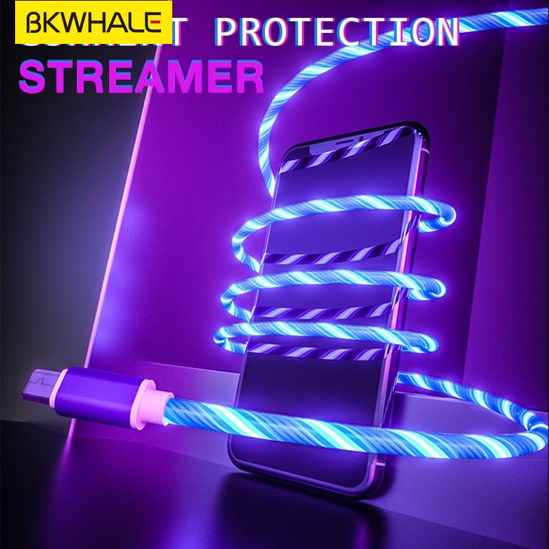Bkwhale 1 M Led Luminoso Cabo De Carregamento Para Huawei Y6 Y7 Y9 2019 2018 Redmi 6a 5a 7 Iphone Micro Usb Tipo C Flui @ @ Ficação Do Carregador Do Telefone Móvel Cabel