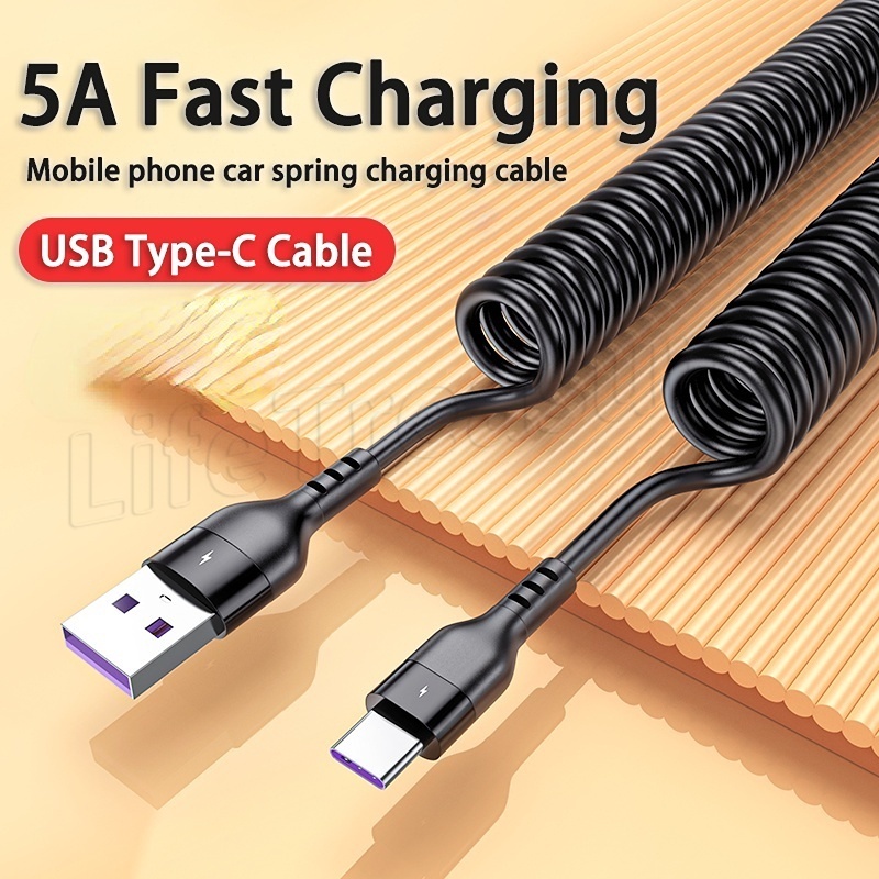 1/1.5m Cabo De Carregamento Rápido De 5A Tipo C Dados De Tensão Da Mola Retrátil Do Telefone Acessórios Micro USB Portátil