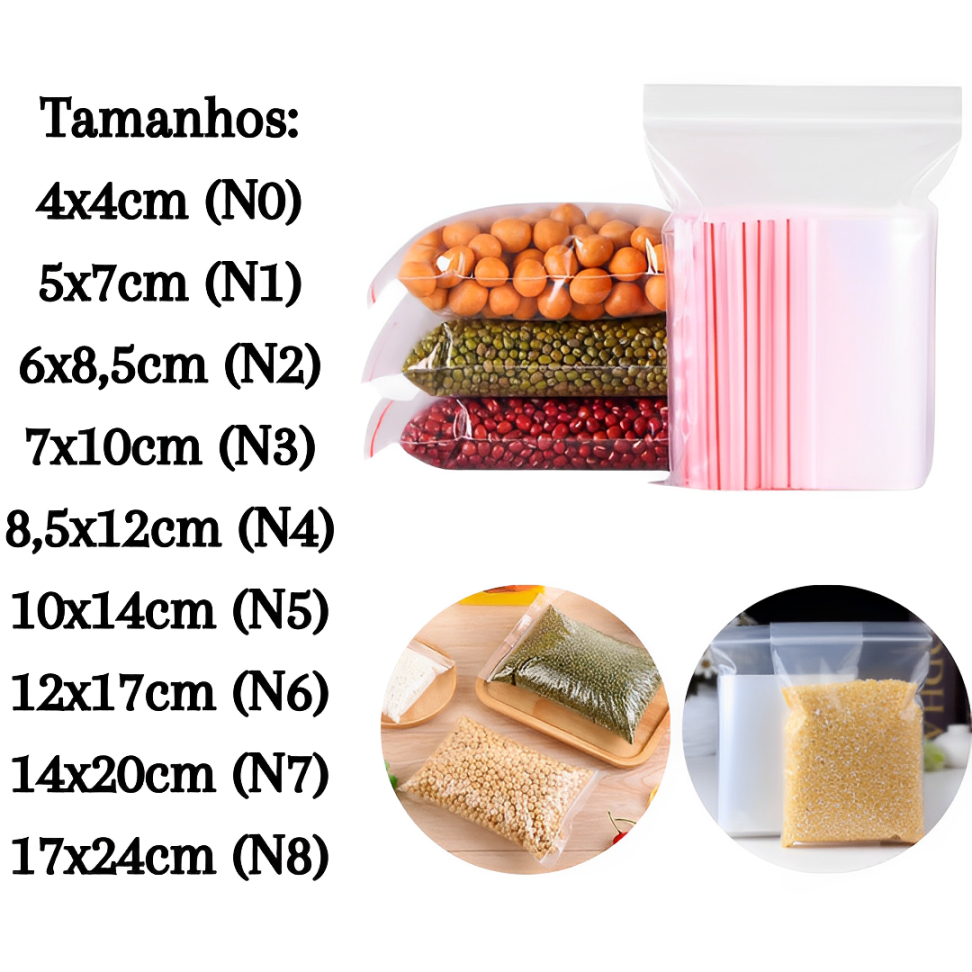 Saco Zip Abre e Fecha Diversos Tamanhos com 100 unidades Hermético Saquinho Plástico Freezer Geladeira
