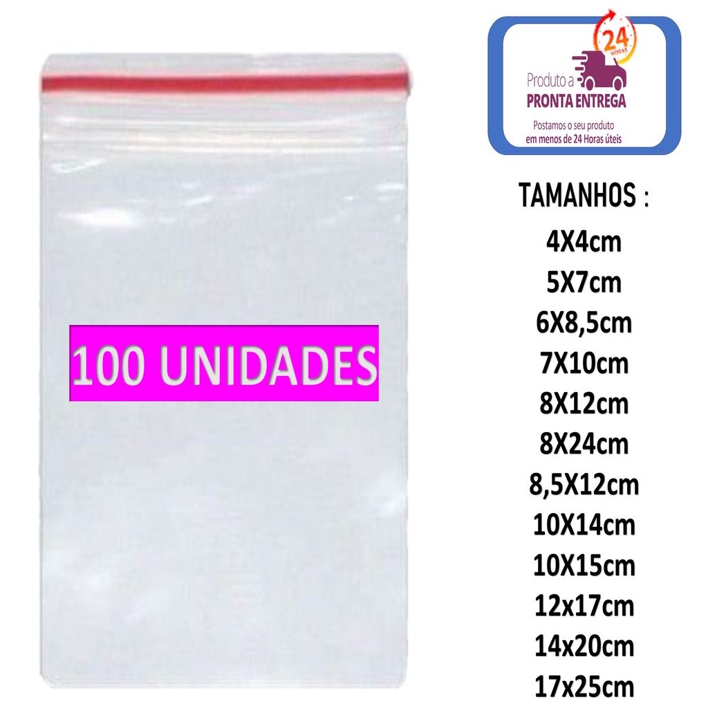 Saco Zip lock Diversos Tamanhos com 100 unidades Hermético Abre e Fecha Saquinho Plástico