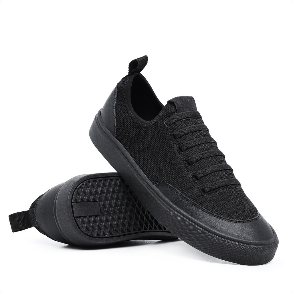 Tênis Casual Cano Baixo Sapatênis Masculino Preto Cadarço Elástico Calce Fácil Confortável
