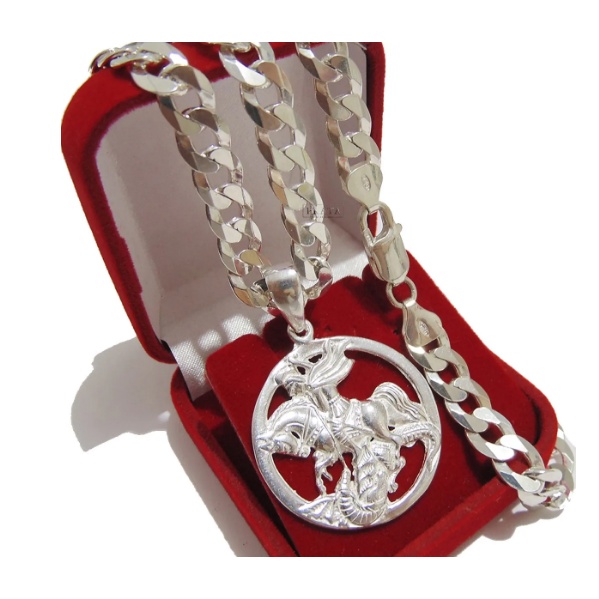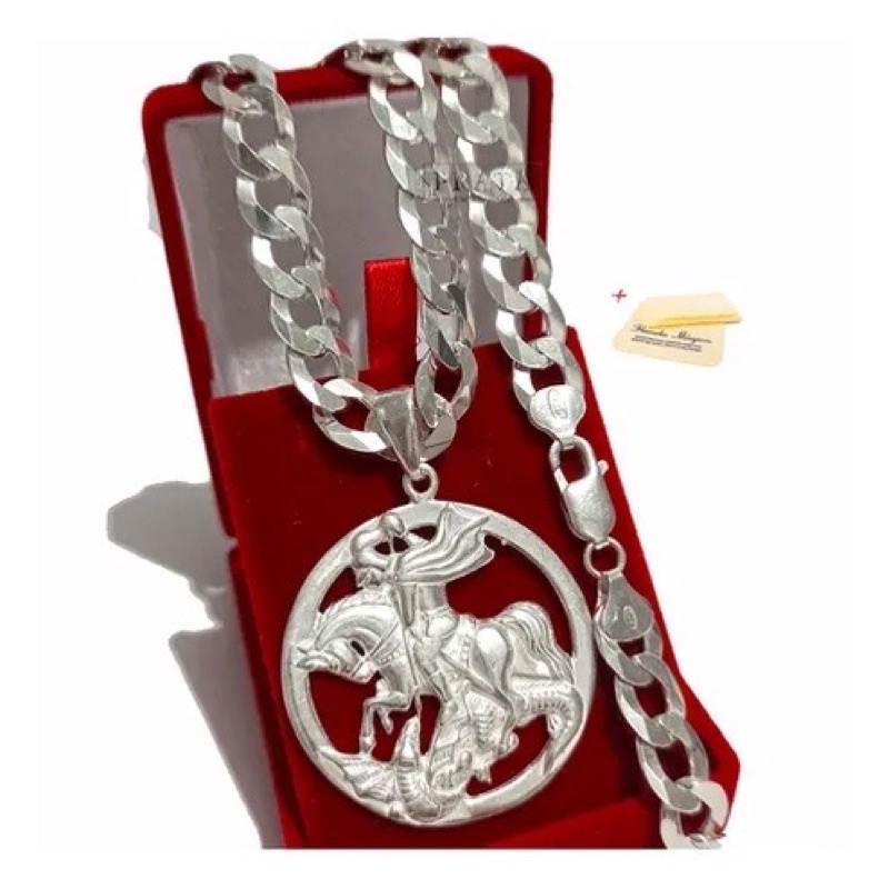 cordao prata 925 grumet escama grossa com pingente São Jorge garantia corrente de prata original maciça