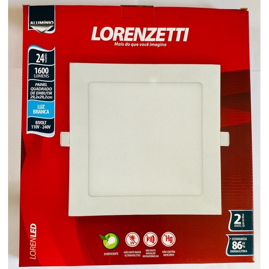 Lúminaria Painel Plafon Embutir Quadrado Teto/Laje Led 6w/12w/18w/24w (6500k) Lorenzetti