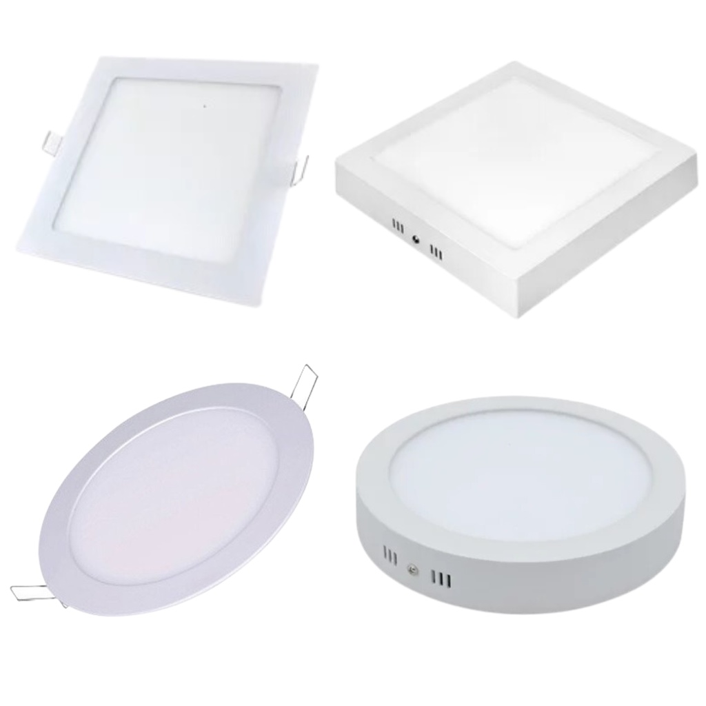 Luminária Led Painel Plafon Quadrado Redondo p/ Teto Embutir e Sobrepor 12W 18W 24W