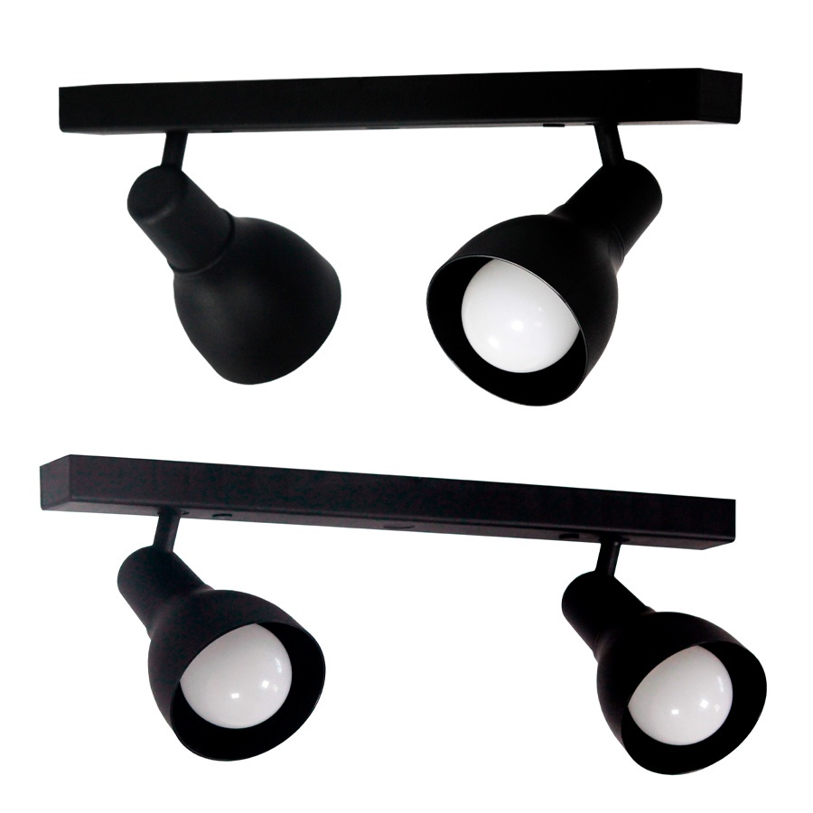 Spot Trilho Lustre Alumínio 2 Lampadas Direcionaveis Preto Lampadas led Sobrepor Teto Casa