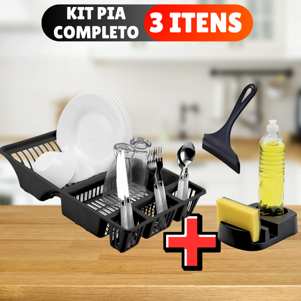 Escorredor de Louças 12 Pratos 4 Copos Talheres Preto Organize Bancada de Cozinha Utimil