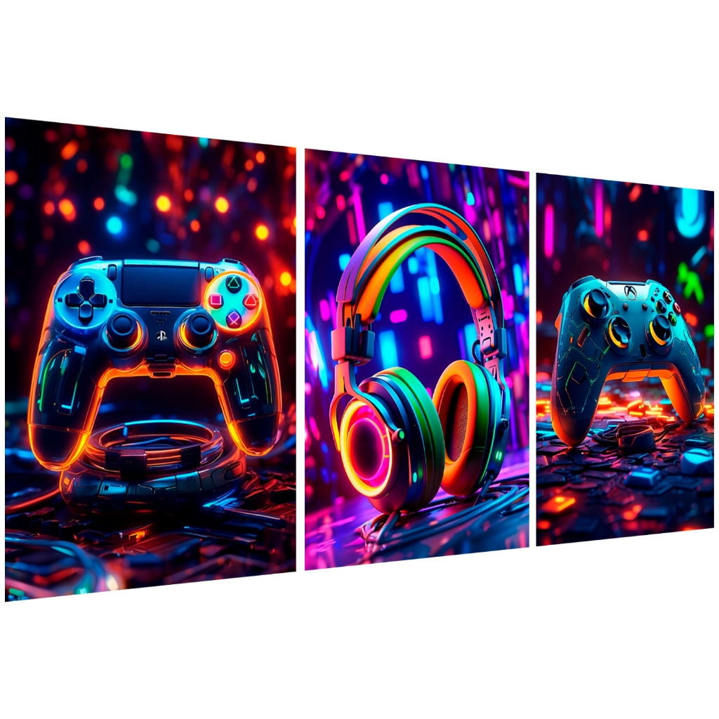 Kit 3 Quadros Decorativos Video Game Jogos Nerd Quarto Gamer