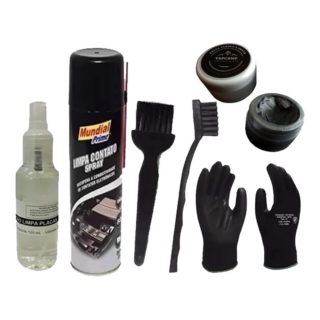 Kit Pasta Térmica Prata, Limpa Contato Escova Luvas Pincel