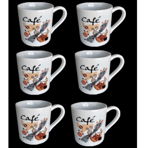 Conjunto Com 6 Canecas Café Com Leite Porcelana Branca Decorada 210 Ml