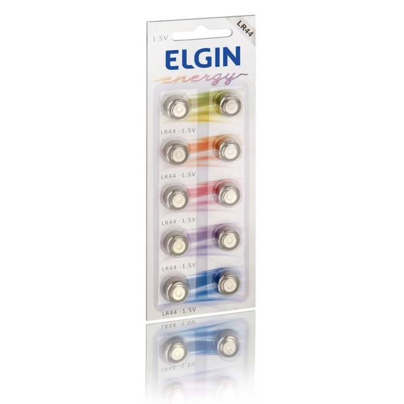 Pilha Alcalina LR44 Elgin Bateria A76 Ag13 kit 10 unidades