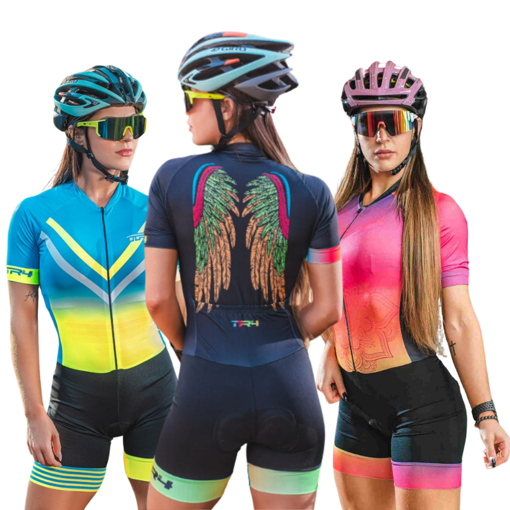 Macaquinho Ciclismo Feminino Macacao Forro De Gel Alta Densidade Almofadado TR4 Fresh Vários Modelos Conjunto Mulher Ciclista Bolsos Roupa De Bike