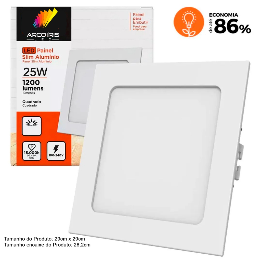 Painel Plafon 25w Led Quadrado Embutir Branco Frio Luminária Teto Gesso Pvc